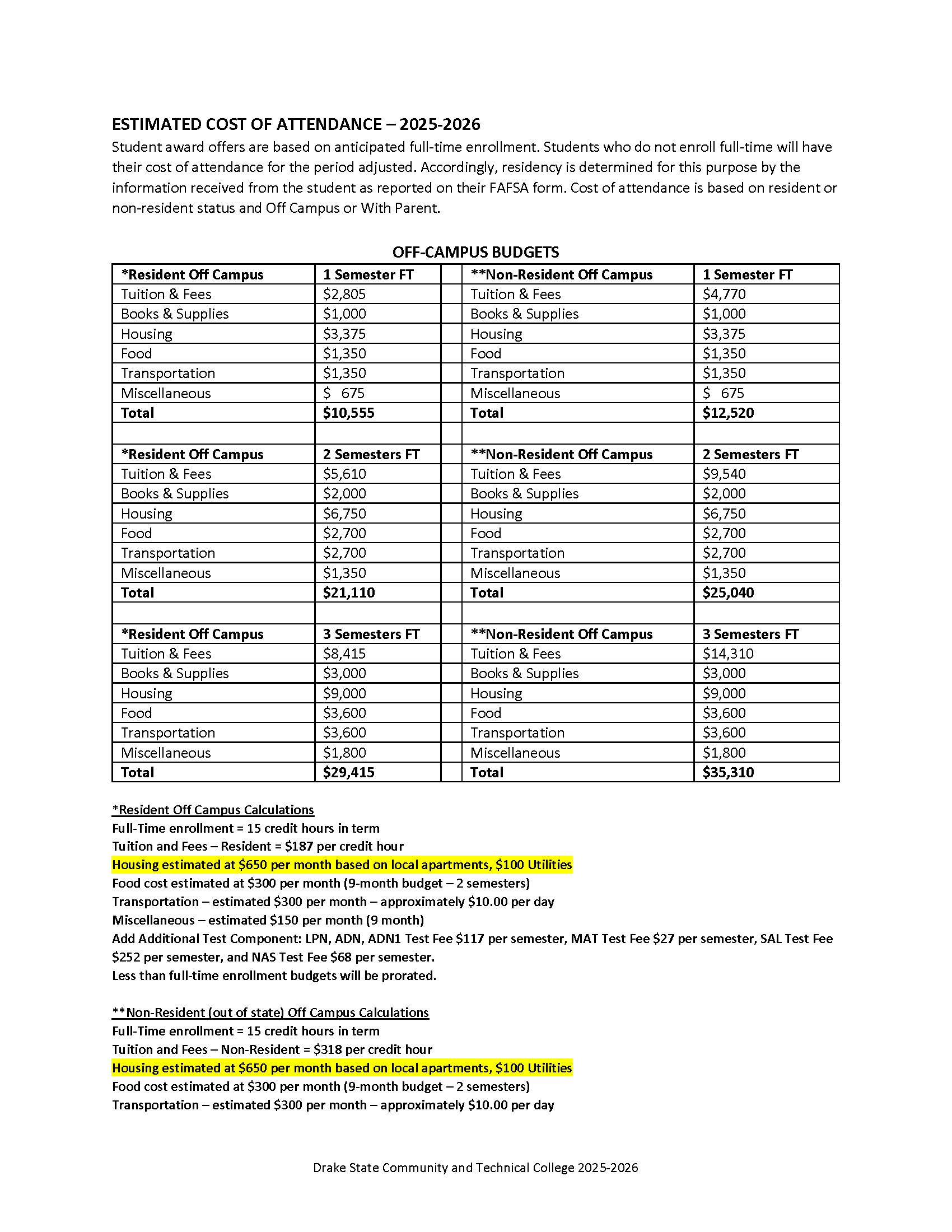 Estimated Cost of Attendance