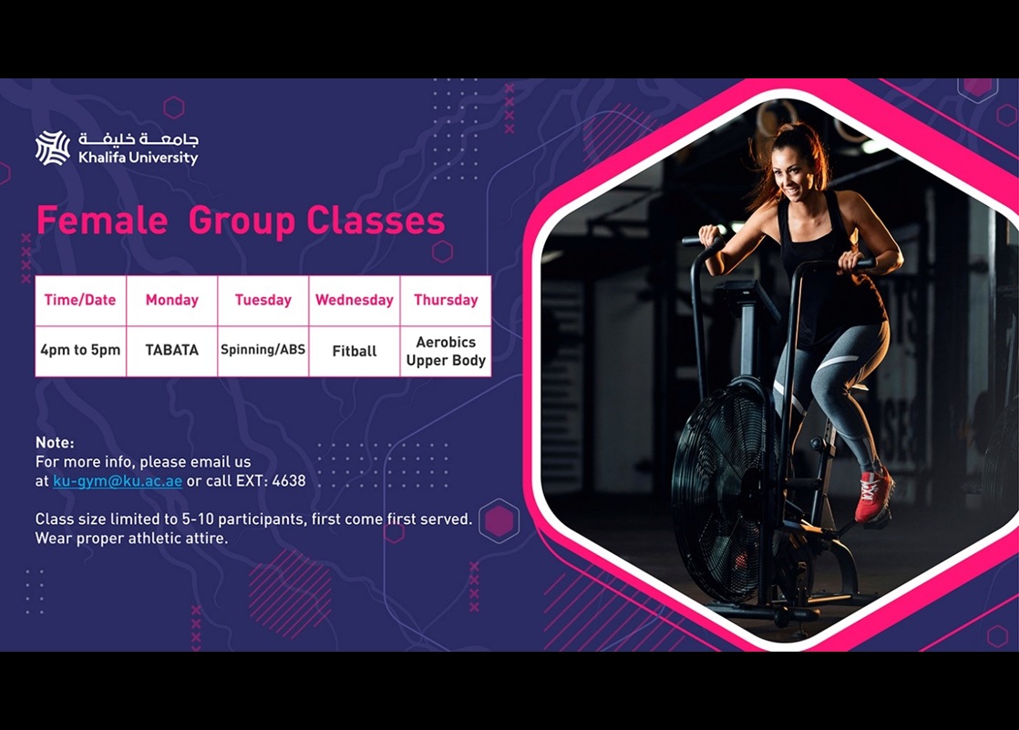 All sports and fitness facilities are gender specific and provided for the use of University students with a valid student card. The facilities are strictly for the University’s students, staff and faculty and all users are required to produce their ID cards if so requested by staff manning the Reception area or security. The Sports Complex in the Main Campus is located in Building D, next to the Student Hub, & 2nd floor Main Campus for the Female Gym, and Um lulu Dorm, Masdar Dorm, ADNOC School Dorm. The state-of-the-art sports facility includes: